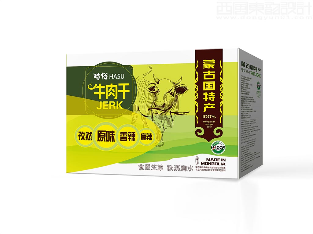 北京烏珠穆沁肉業(yè)有限公司蒙古國(guó)哈俗麻辣牛肉干肉食品包裝袋設(shè)計(jì)