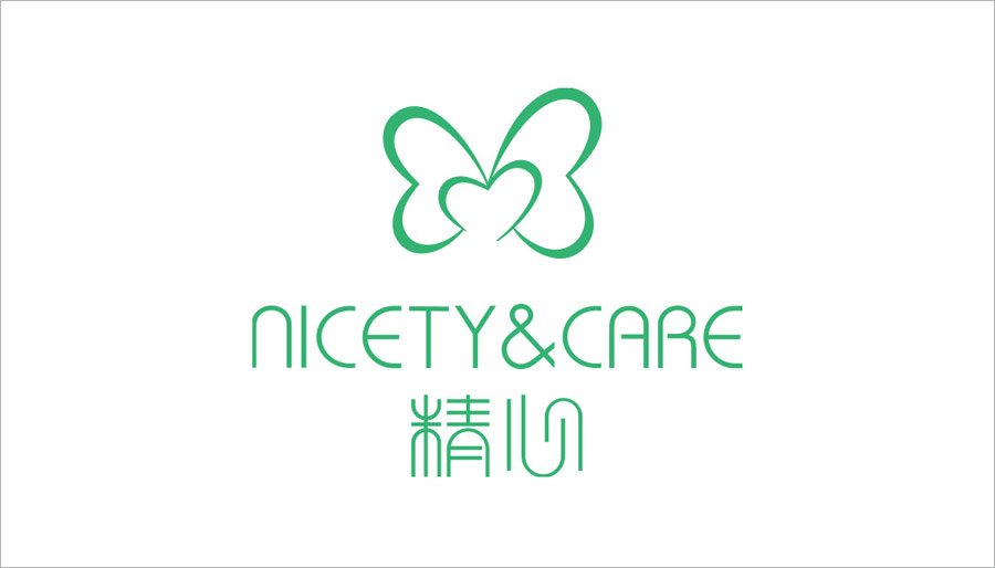 精心化妝品的標(biāo)志設(shè)計是由三個心形組成的蝴蝶造型,心形代表對消費者的精心關(guān)心與呵護(hù),蝴蝶以其身美、形美、色美、情美被人們譽為“會飛的花朵”代表女性的時尚美麗與活力,標(biāo)志設(shè)計的中文字體“精心”與英文字體“NICE&CARE”經(jīng)過精心設(shè)計,筆畫纖細(xì)柔美,與化妝品行業(yè)的特征十分吻合。我們得到的信息是:健康的、時尚的,美麗的、活力的、富有愛心的。